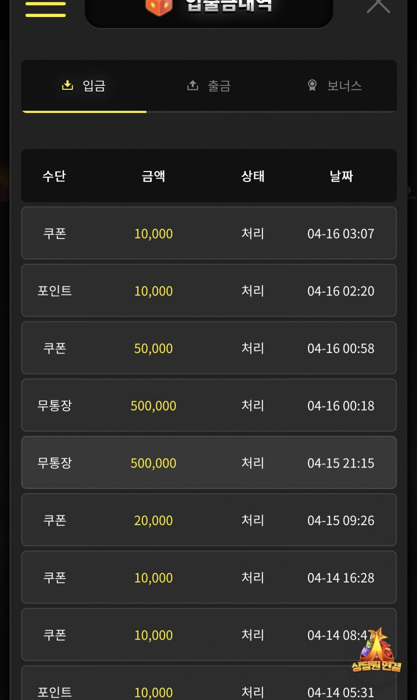 오늘은 오링났네요ㅠㅠ 그래도 수익 평소에 잘보니깐 화이팅 해서 다음번애는 잭팟 챙겨보겠습니다 ㅎㅎ 다들 화이팅 하십시쇼 무조건 수익 보고싶네요ㅠ 안전한 놀이터 많은 이용부탁두려요